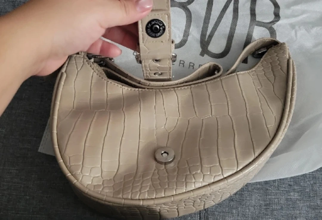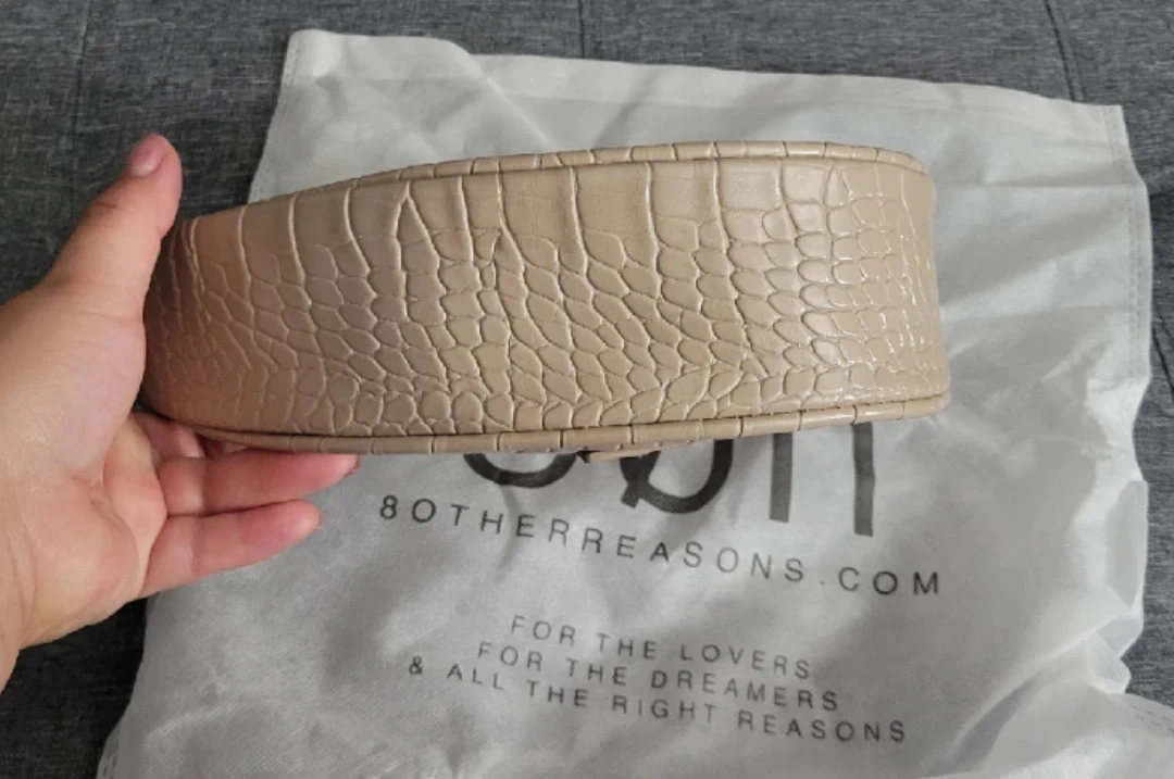 Selling a 8 other reasons bag in a beautiful beige croc embossed.It's new , never used condition and comes with its original packaging. This stylish bag is perfect for everyday use and adds a touch of elegance to any outfit
