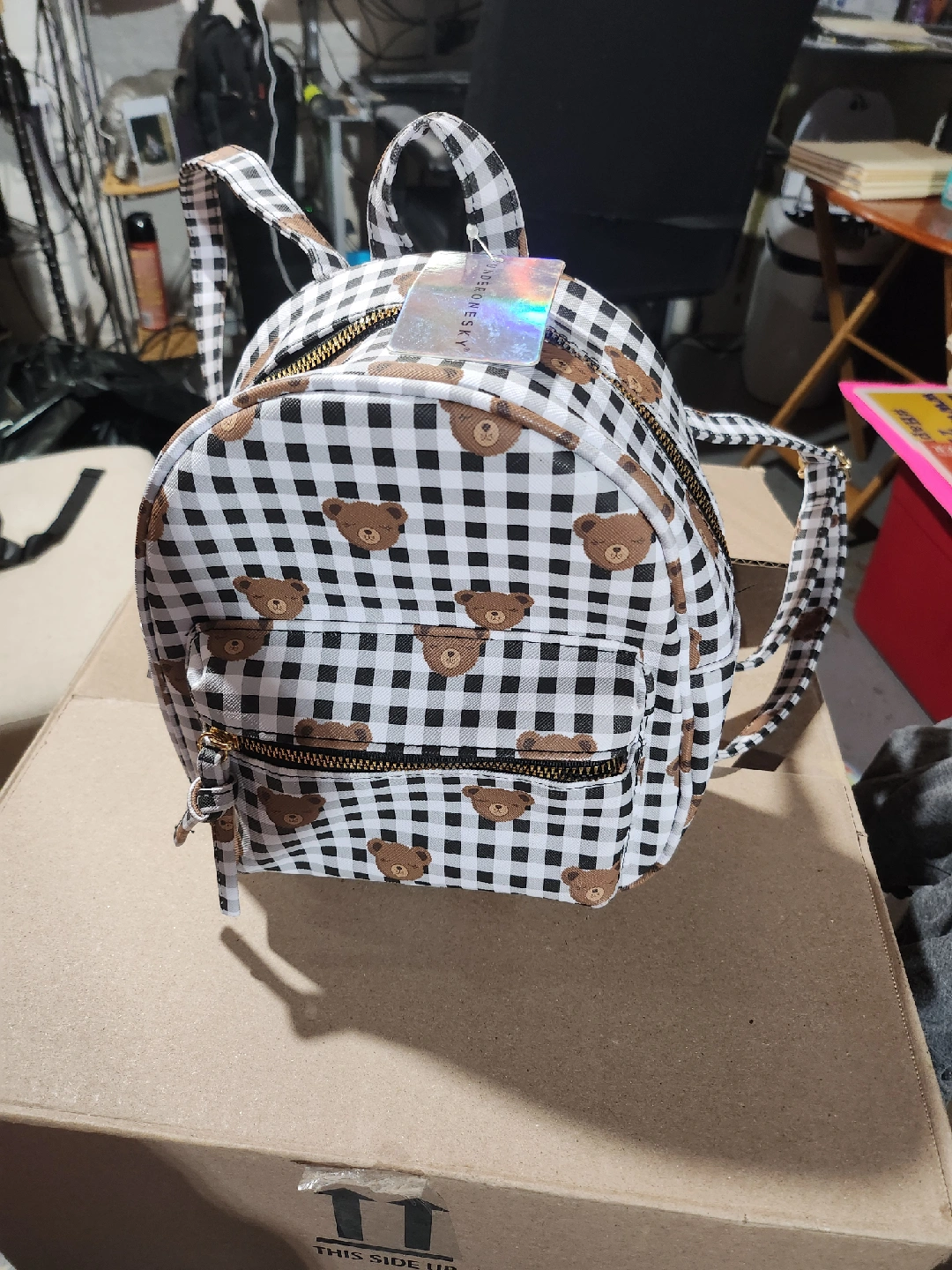 15This adorable Clare V. X Laduree mini backpack features a charming gingham pattern with cute bear designs! It's brand new with tags, perfect for adding a touch of whimsy to your style