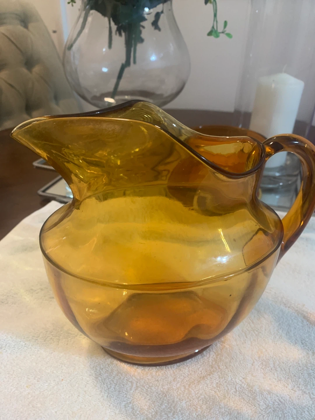 Vintage Amber Glass Pitcher