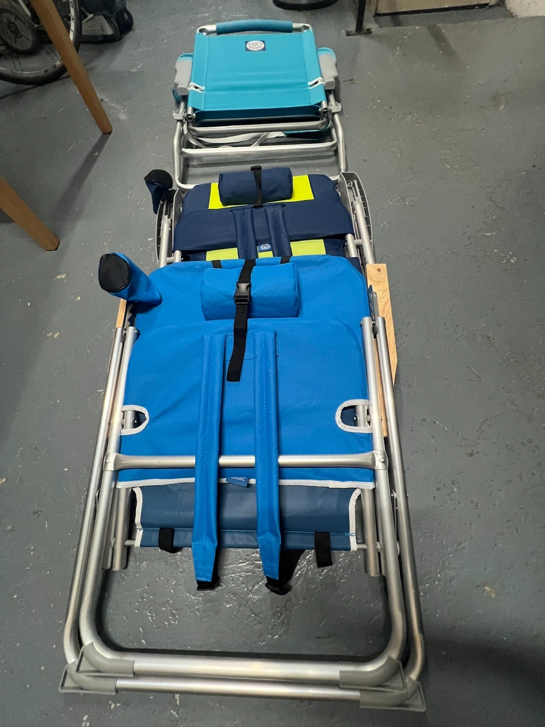 Selling a set of three Caribbean Joe beach chairs! They're in good condition and ready for some fun in the sun. One is a vibrant blue, another is a cool turquoise, and the third is a mix of navy and bright yellow. Perfect for a family outing or a day at the beach with friends - one still has the tags