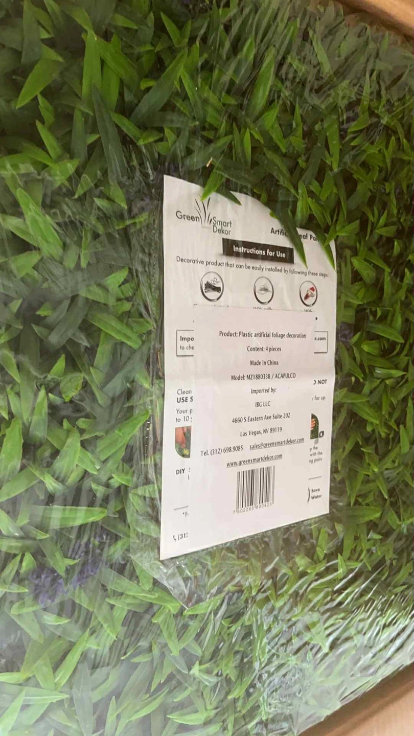 15Greensmart Dekor Artificial Decorative Acapulco Leaves Wall Panels, Set of 4 🌸 brand new in box Can open for you to check price firm…4 for $45 Get a realistic look and feel with Greensmart Dekor. Detailed with life like leaves that create a natural and calming environment. Perfect for building a green wall, hedge, privacy fence, disguising unsightly areas. Panels can be used indoors or outdoors. Each pack contains set of 4 panels (19.68 in x 19.68 in) which cover 10.76 sqft Made of PE that is UV proteted Weather Resistant Maintenance free Quick and easy to install Eco friendly-no water needed