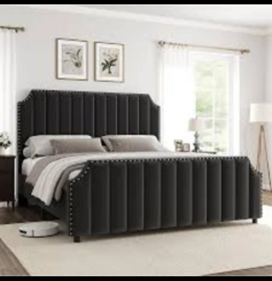 New Beige Tufted Fabric Winged Back Accent Chair with Pillow