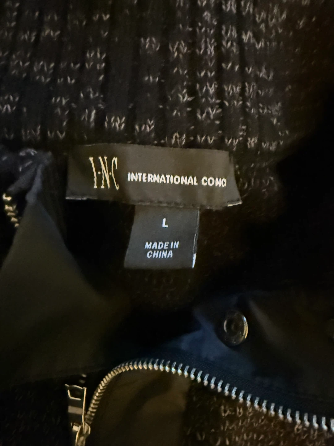 Selling a men's pullover from INC International Concepts. It's a size L and features a stylish design with a partial zipper. The material has a textured look, perfect for casual wear!