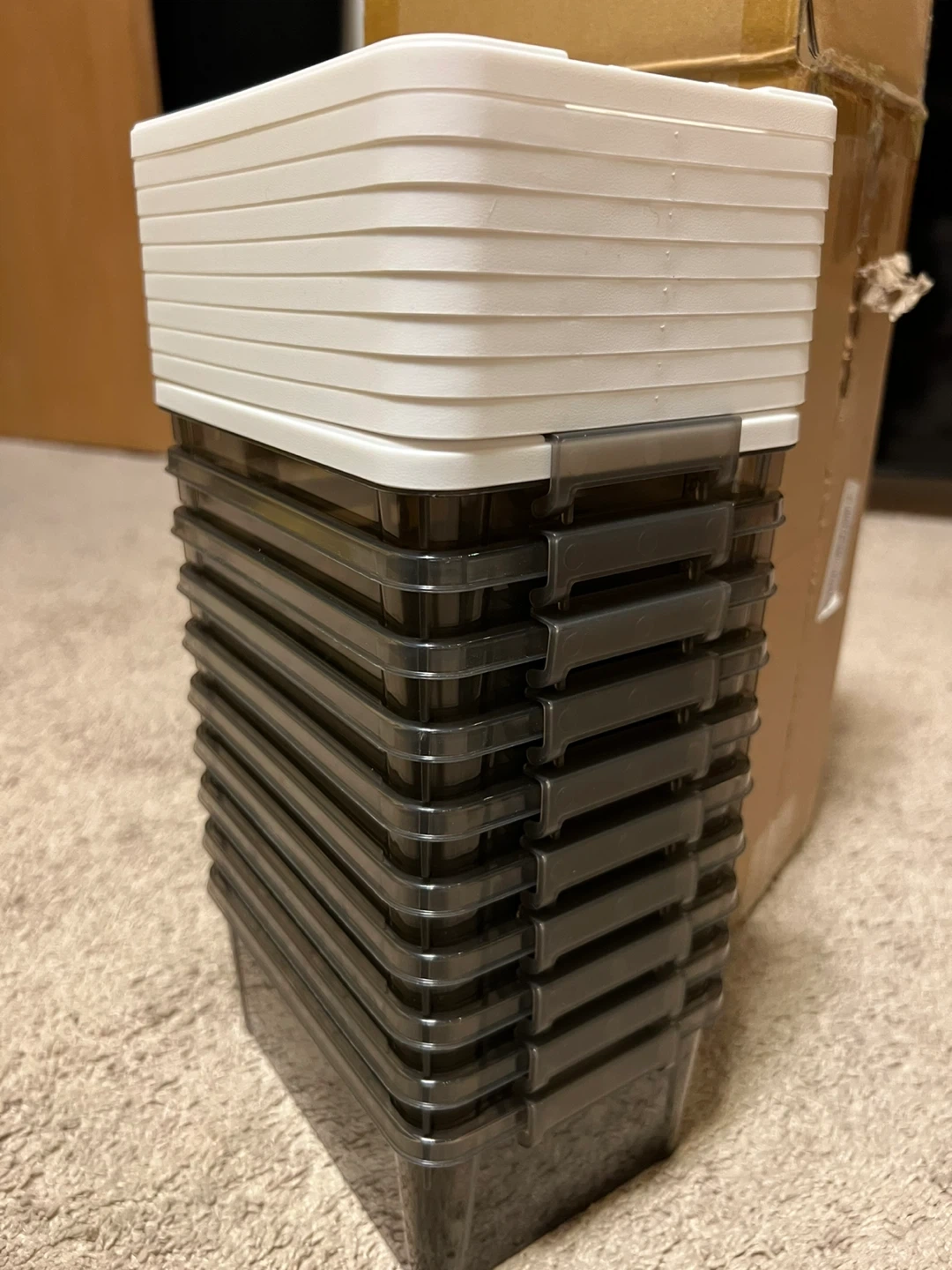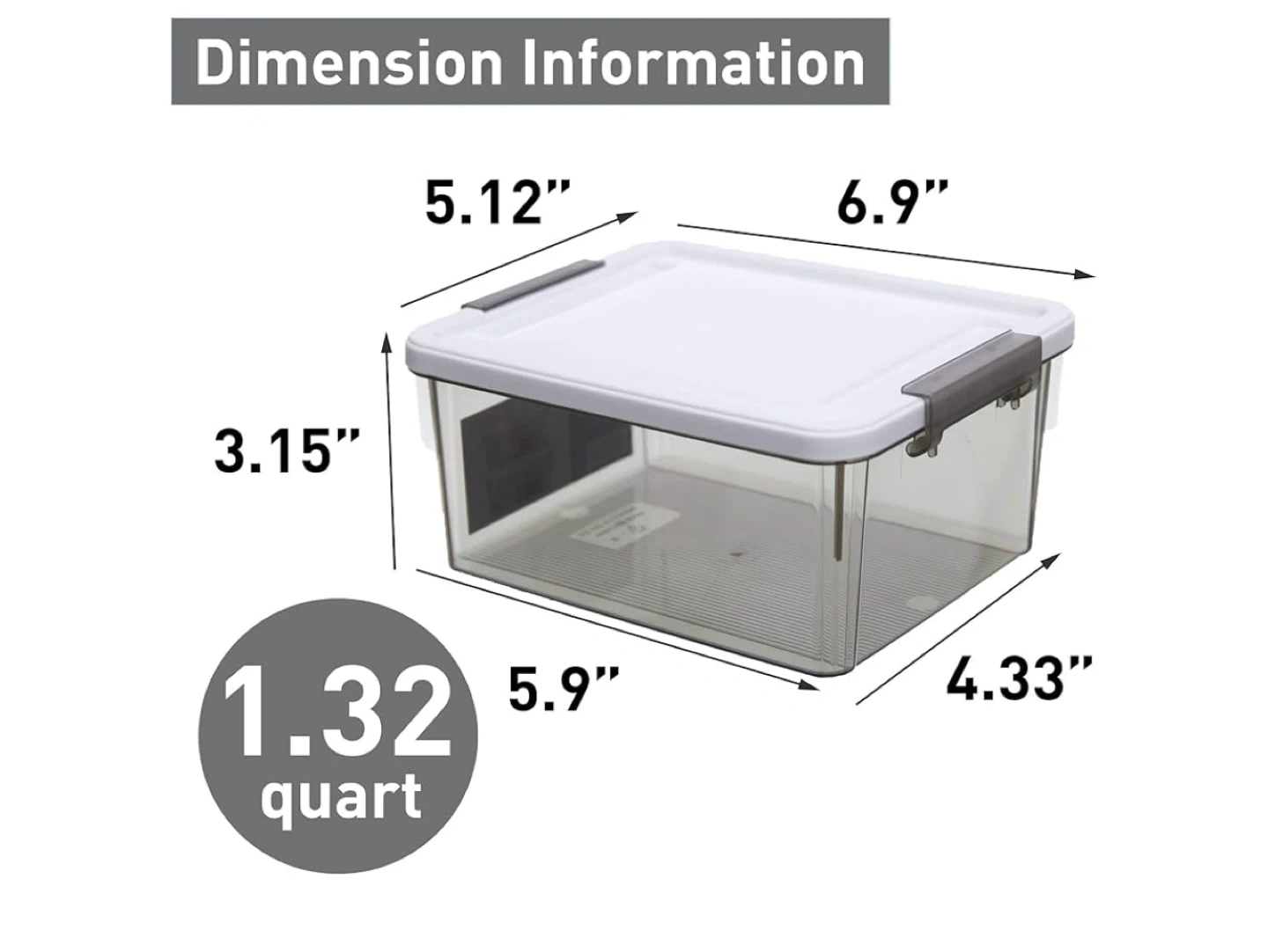 121I'm selling a set of 10 clear storage bins! They each have a 1.32 quart capacity and come with lids. Great for organizing small items around the house or office. The dimensions are 5.12" x 6.9" x 3.15".
