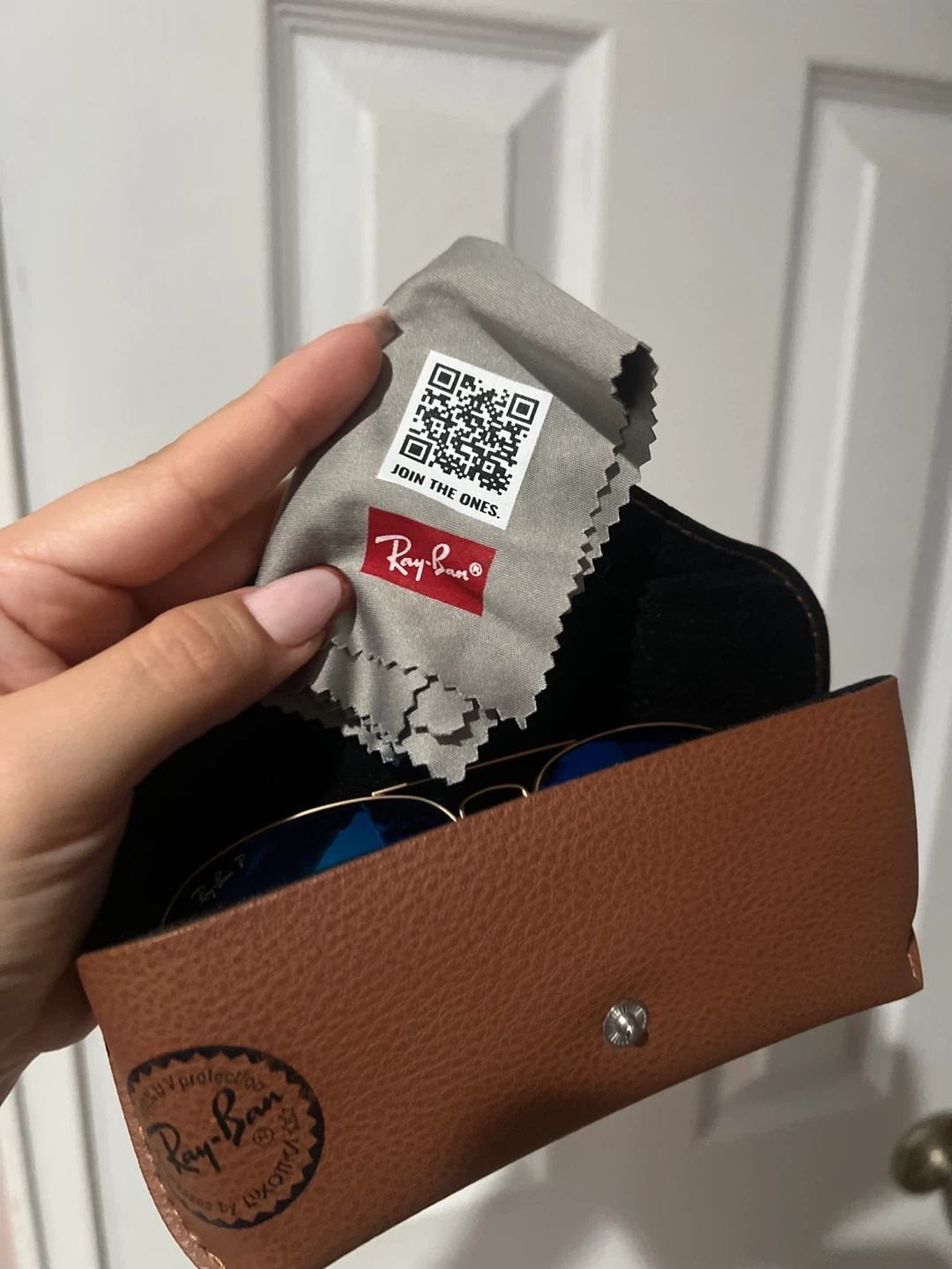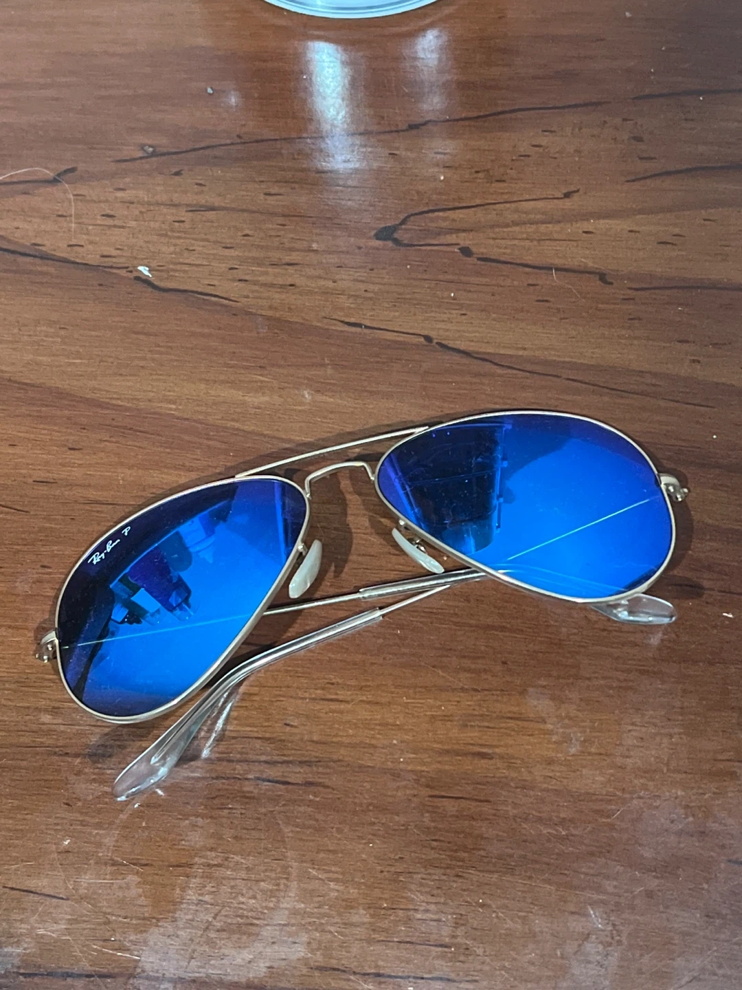 Selling a pair of Ray-Ban aviator sunglasses. They come with a case for protection. These classic shades are perfect for sunny days! They have a gold frame and vibrant blue lenses. Worn maybe twice, total impulse by and they just don’t look good on me.