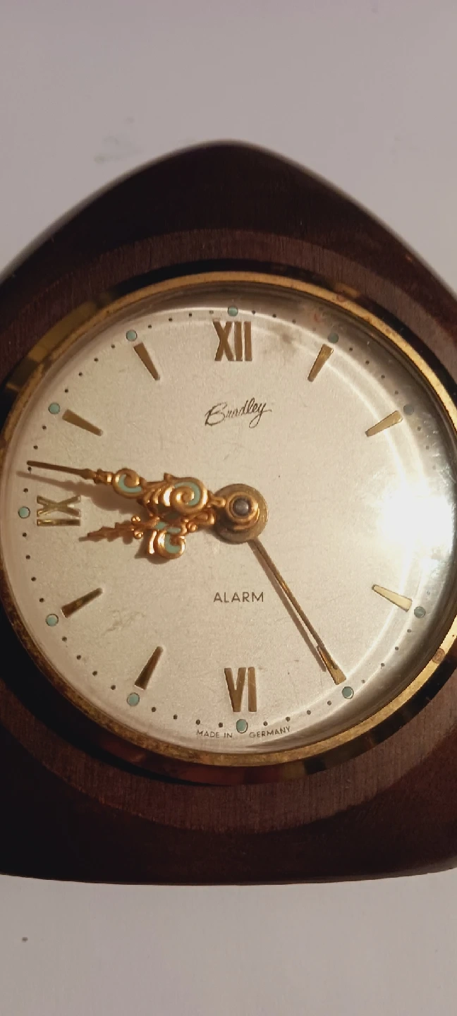 1000+Selling a Bradley Germany alarm Mechanical clock. It's a charming piece made in Germany with a unique design. The clock features a wooden frame and a classic analog display. It says 'Alarm' and 'Made in Germany' on the clock face. It is Mechanical Winding up table ⏰️ alarm clock. It is not tested, not working, selling as is. Made in Germany. ALL MY PRICES ARE NEGOTIABLE !! 5"×4".