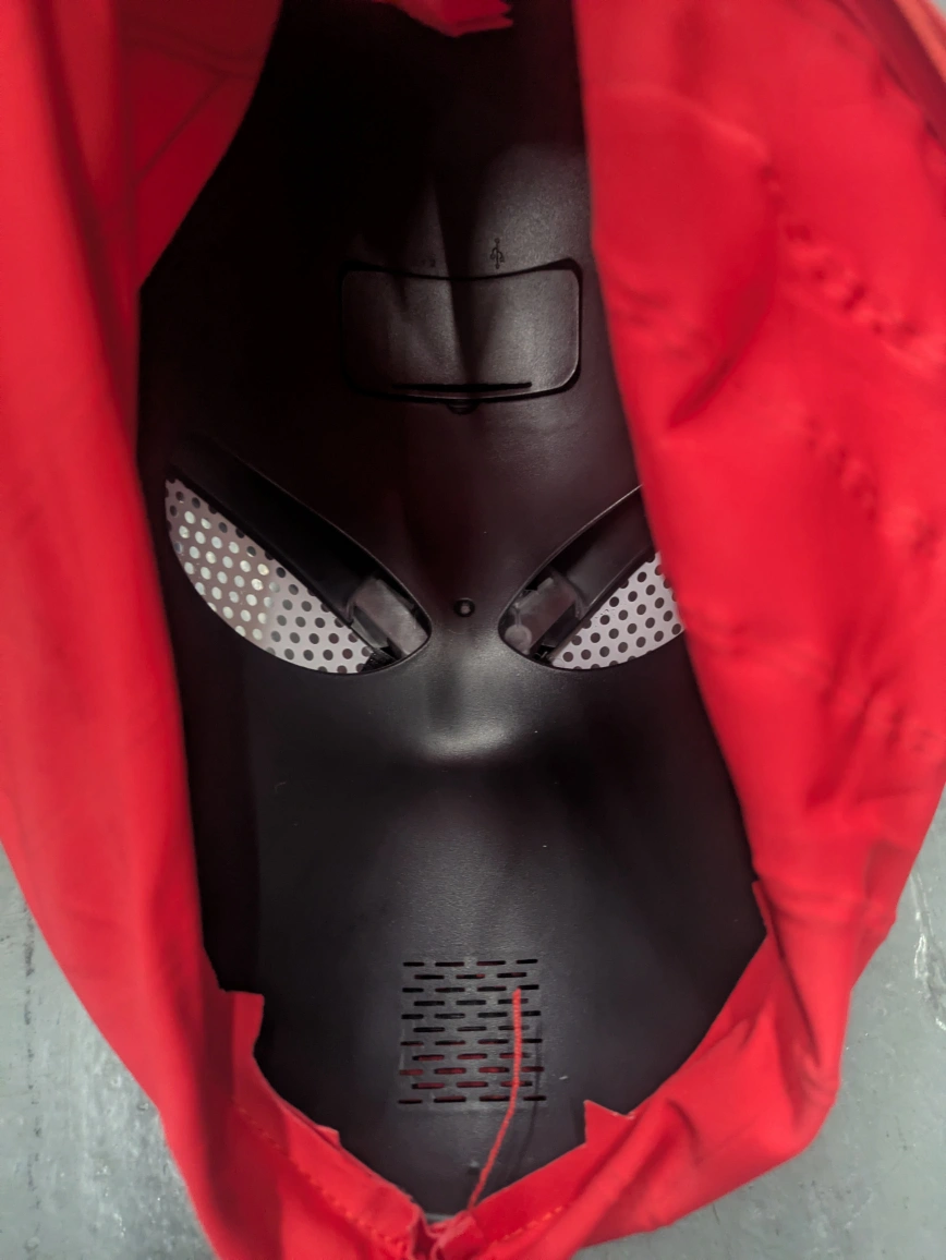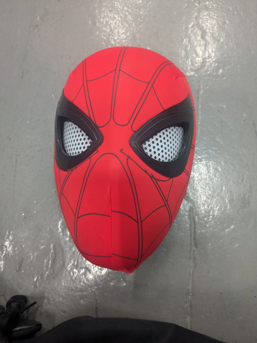 134Selling a Spider-Man mask. It's red and black with a cool web design. Perfect for any Spider-Man fan!