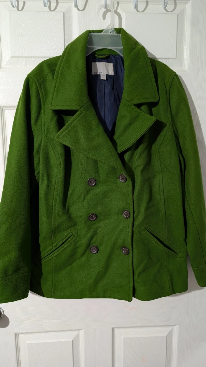 This is a gently used green pea coat from Old Navy in size XXl. It's a stylish and cozy piece, perfect for layering during the cooler months. The double-breasted design and classic cut make it a versatile addition to any wardrobe!