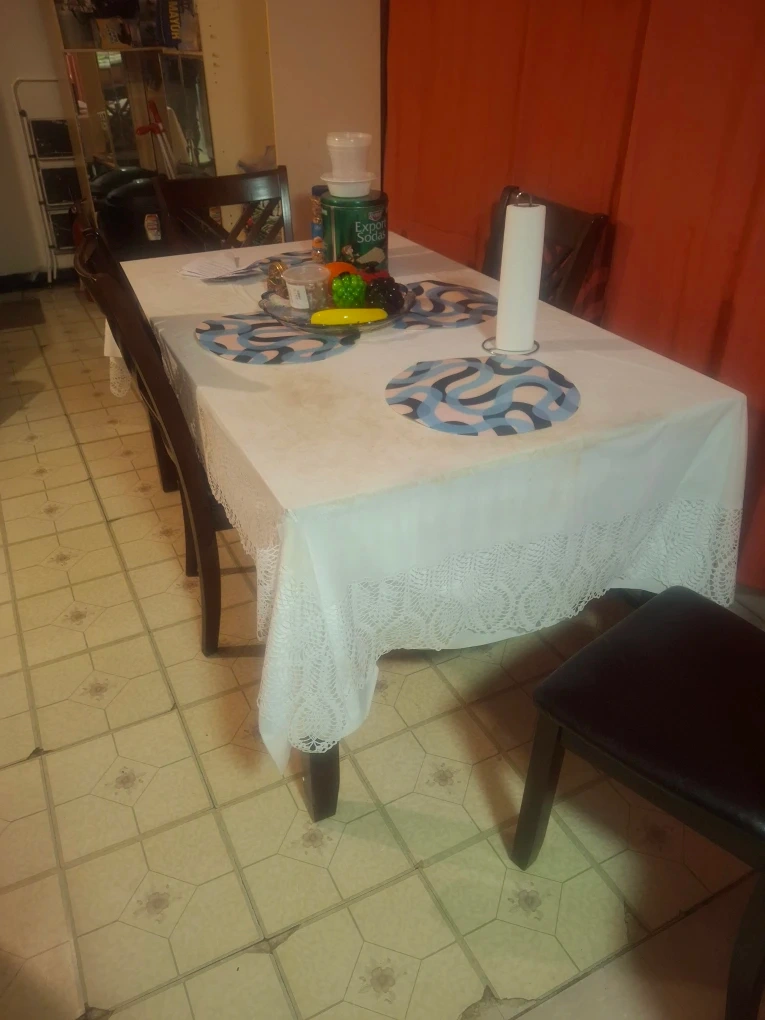 Selling 3 dining tables and chairs set. Perfect for a small dining area or kitchen! The table is a good size for everyday meals and can comfortably seat a few people. The chairs are sturdy and in good condition