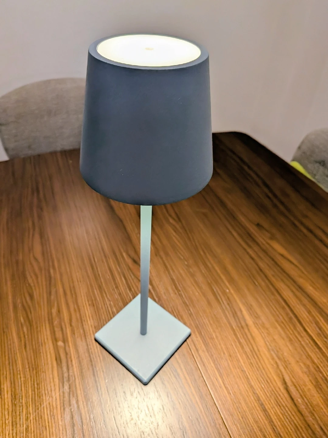 Here's a stylish cordless LED table lamp in gray! It's perfect for adding a touch of light to any room. It's lightweight and portable, so you can easily move it around wherever you need it.