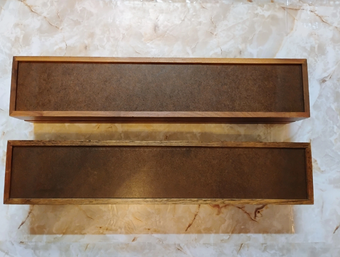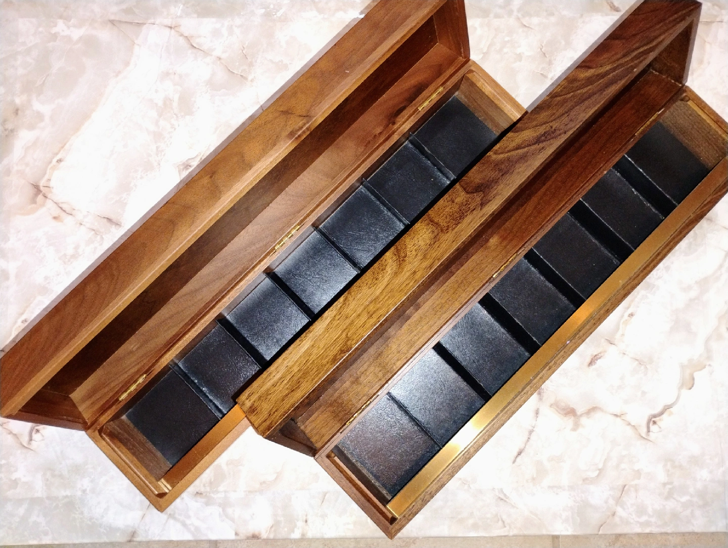 Each box has seven compartments that measure approximately 2-1/4" x 2-1/4". The boxes are 18" long x 3-1/2" wide x 3-1/2" high. Great for storage of all types of small trinkets, jewelry or keepsakes.