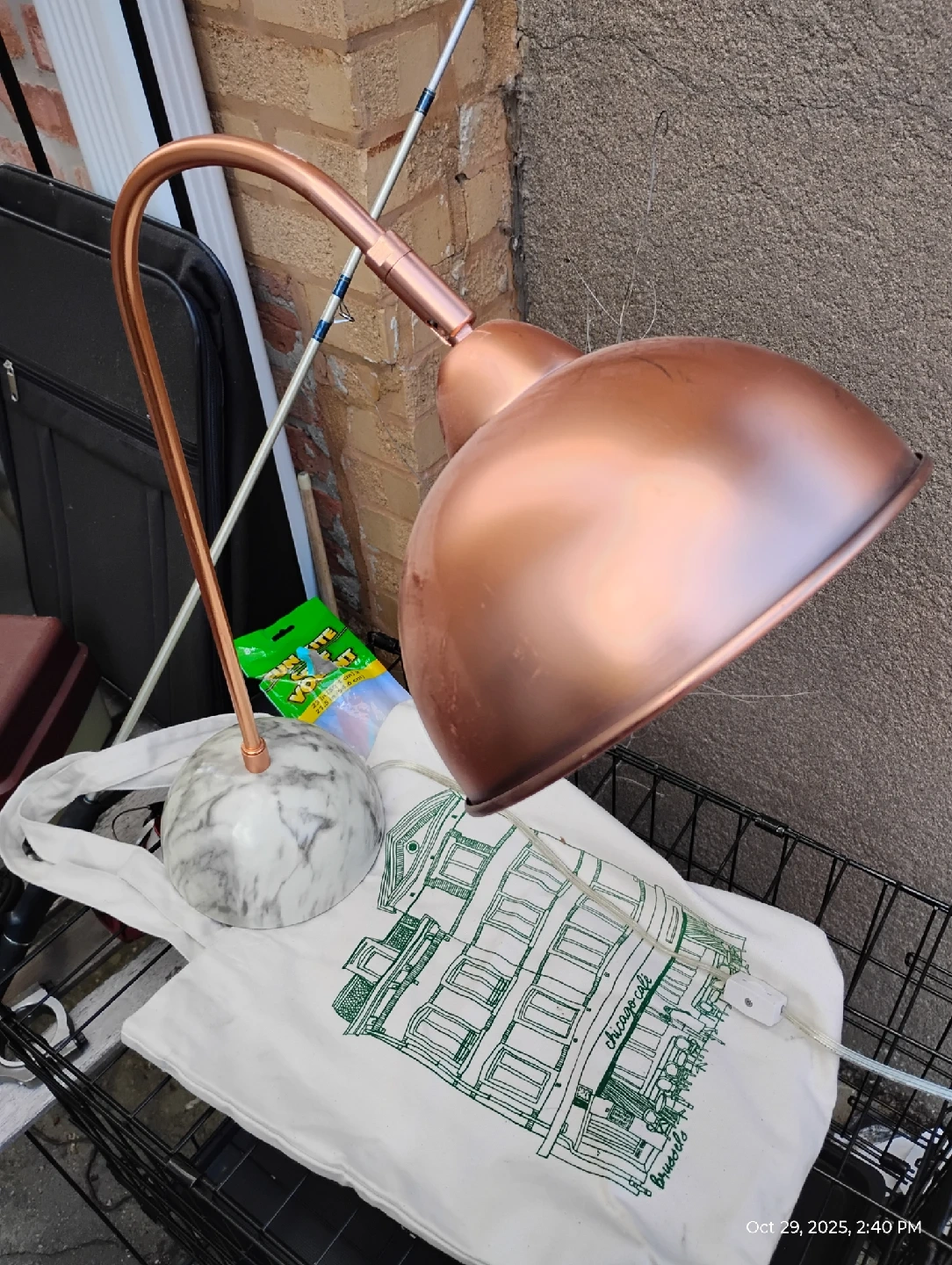 19Here's a stylish copper desk lamp featuring a beautiful marble base! It adds a touch of elegance to any workspace or room. Its warm copper finish complements the cool marble, making it a versatile piece for various decor styles