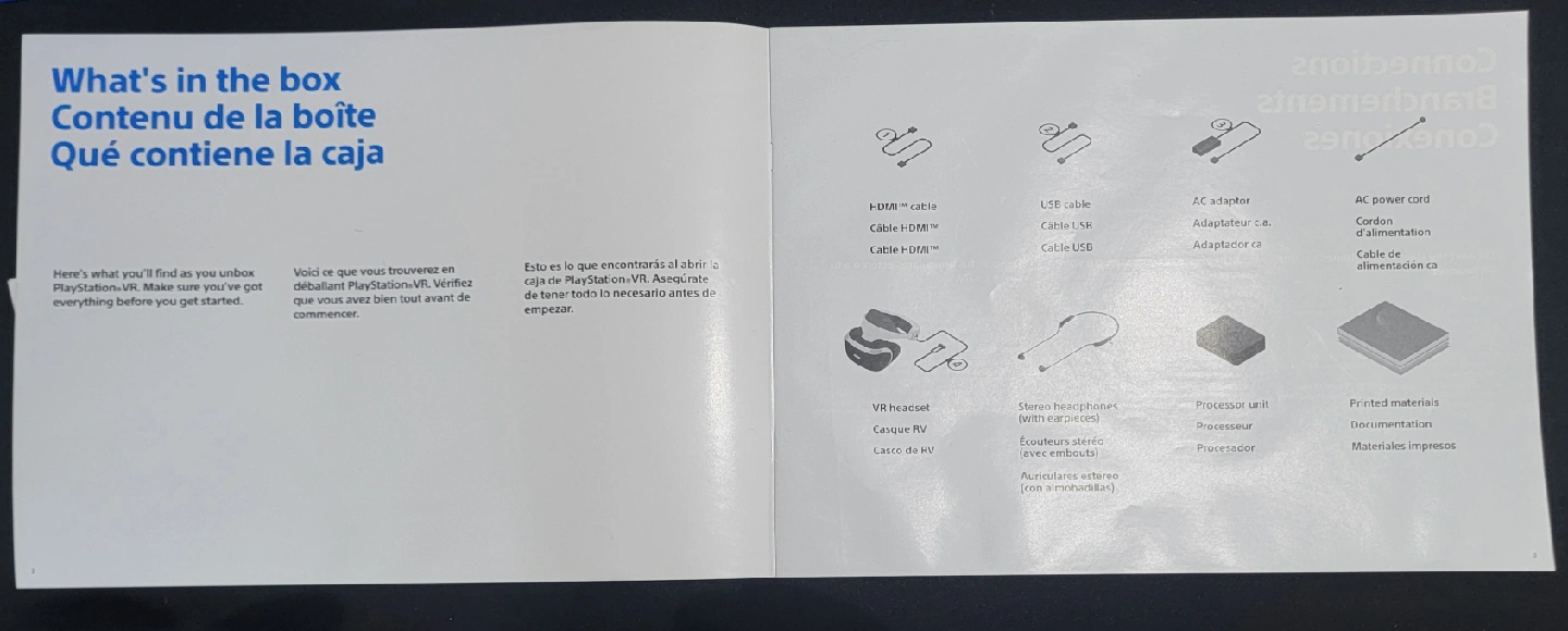 Typically includes a PlayStation VR headset, PlayStation Camera, 2 PlayStation Move motion controller.