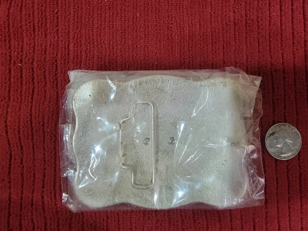 22Here's a vintage belt buckle featuring a horse and rider design. It's in great condition and still in its original packaging. The buckle has a black background with a gold-colored horse and rider, and it's accented with clear stones. It's a unique piece that would add some flair to any outfit Imported from Mexico