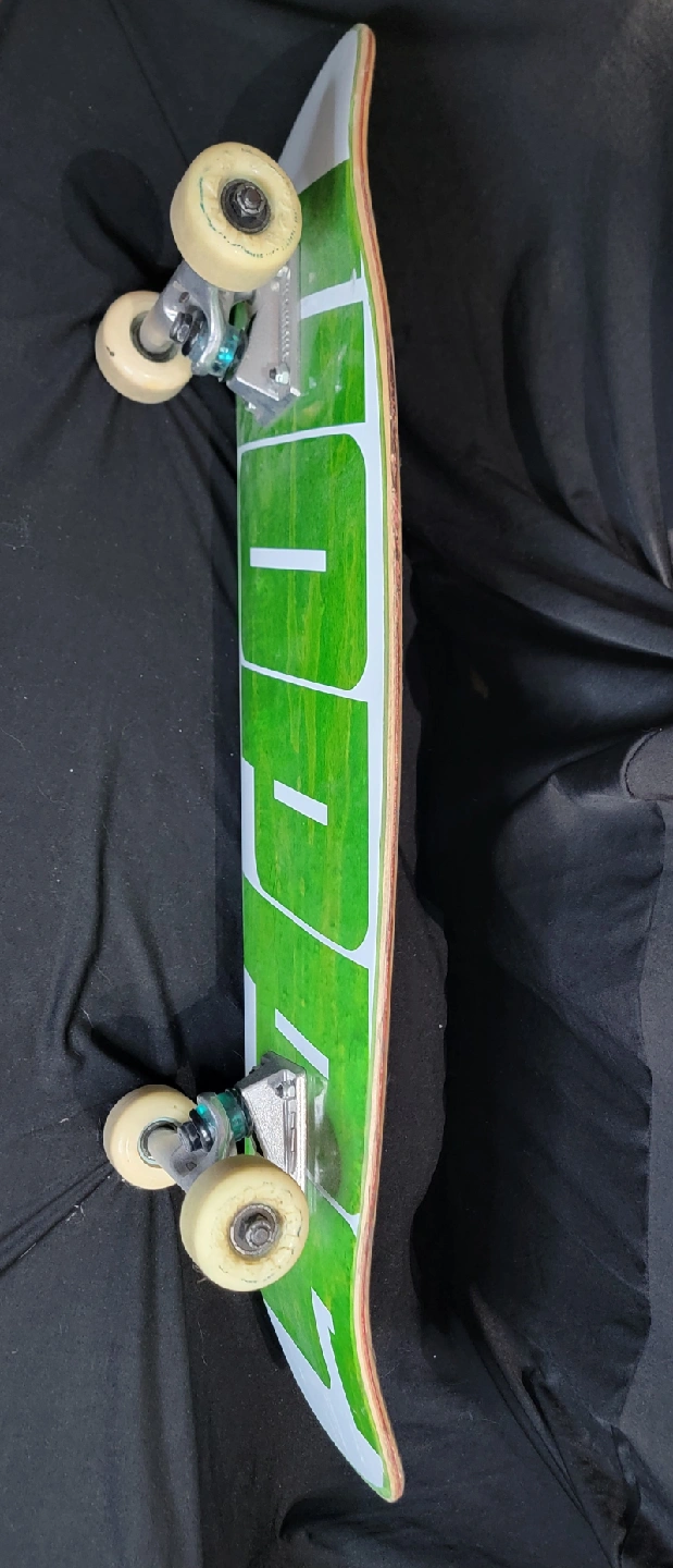 Selling a barely used HOPPS cruiser skateboard, complete with Thunder trucks and 54mm Soft Ricta Wheels! The board has a cool green and white design. The wheels show some signs of use but are still ready to roll. Great for anyone looking to cruise around!