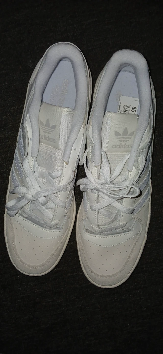 Selling a pair of Adidas Forum Low CL Whtgum sneakers in size 13 US. They are in good condition and ready for a new home. The original price tag shows $109.99.