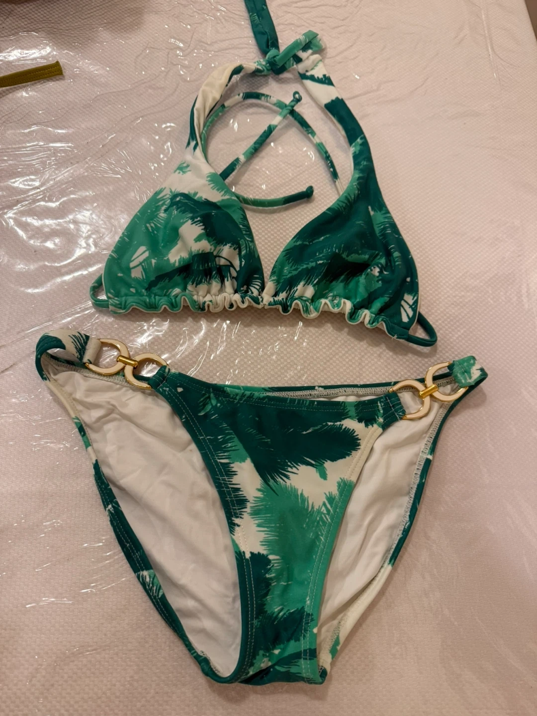 10Selling a VIX bikini set with a vibrant green palm print! The set includes both the top and bottom. Perfect for your next vacation or beach day!