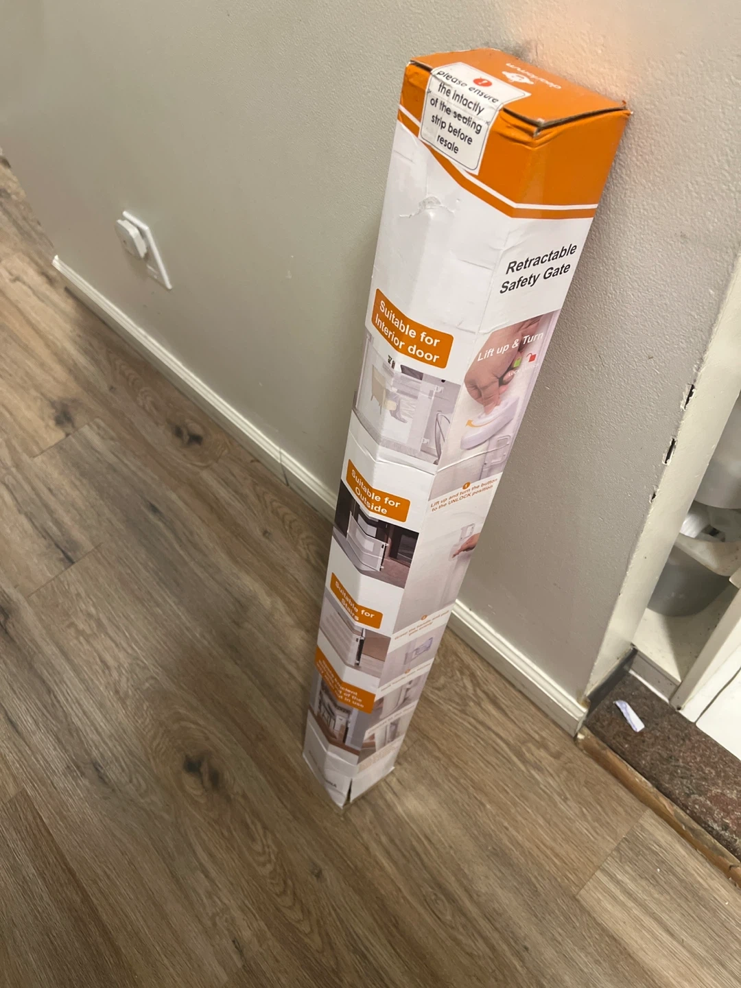 Selling a brand new retractable safety gate still in its original packaging! It's suitable for interior doors and stairs, and even for use outside. The gate is designed to be space-efficient, retracting out of the way when not in use.