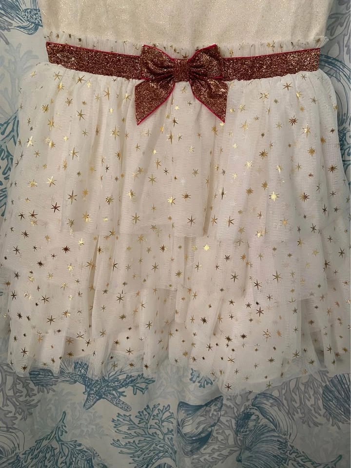 76Girl’s American Girl dress, size 14. Perfect for the Holidays! Excellent Like-New condition, worn once. Soft, stretchy cream velour body, has lots of gold shimmer. Tiered skirt bottom has gold shimmery stars. Dress is lined. Cash only. Meet in Garfield Ridge, Chicago, near Midway. Willing to meet near Oak Lawn, EP, Alsip, Burbank, Bridgeview ☺️