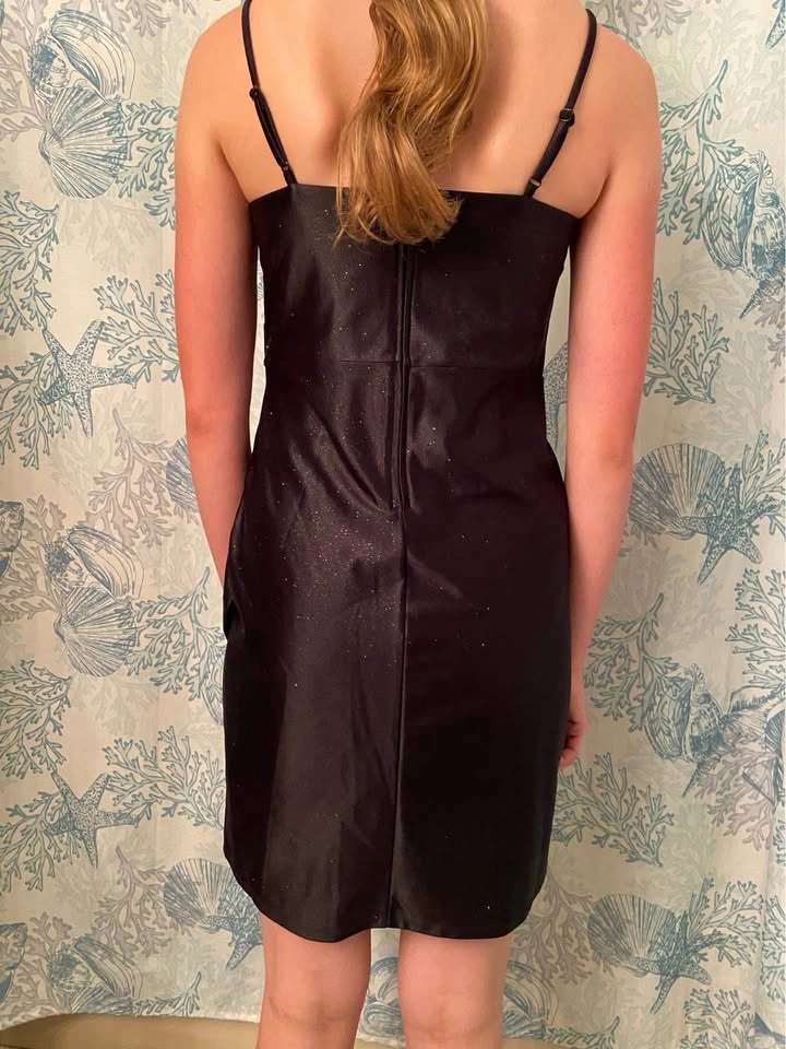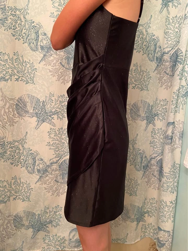 76Girl’s shimmery black dress, with rouched waist, size 16, by nickie lew. Purchased from Von Maur. Has adjustable straps. Excellent used condition, worn once. Worn for 8th grade graduation. Very pretty! Cash only. Meet in Garfield Ridge, Chicago, near Midway. Willing to meet near Oak Lawn, EP, Alsip ☺️