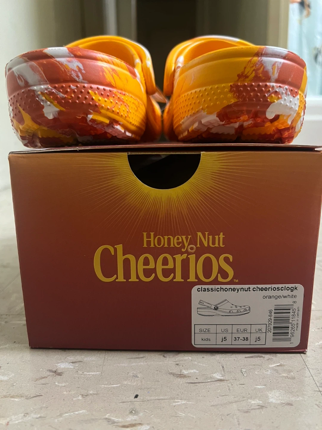 Buy & SellNEW SIZE 5Y Crocs x Honey Nut Cheerios ClogsNEW SIZE 5Y Crocs x Honey Nut Cheerios Clogs$40NEW Size 5 junior HNC Crocs with seven themed jibbitz Please message before buyingConditionNewSize5BrandCrocs1 chats·0 favorites·38 viewsSELLERverifiedSkyeBushwick31624 reviewsWHERE TO MEETHalsey J/Z Station