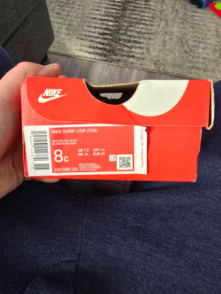 Buy & SellNike Dunk Low (TDE) Size 8CNike Dunk Low (TDE) Size 8C$32Selling a pair of Nike Dunk Low (TDE) shoes in size 8C. They come in the original box. The color is white/black.ConditionLike new0 chats·0 favorites·11 viewsSELLERverifiedDanielCentral Islip600 reviewsWHERE TO MEETTarget Central Islip