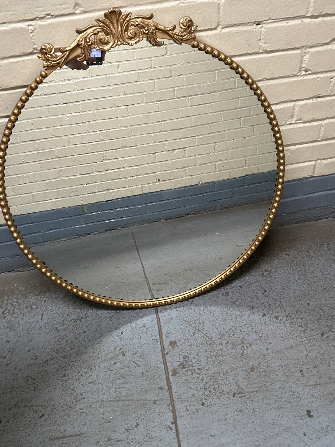 0Selling a beautiful gold round decorative wall mirror! It would look great in any room, adding a touch of elegance and style to your home decor. The mirror is in great condition and ready to be hung up and enjoyed