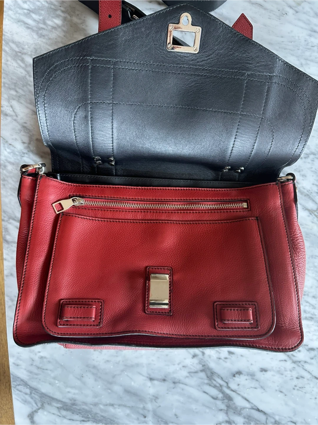 Selling a Proenza Schouler PS1 medium satchel in red leather. It's in great condition and comes with its original strap. The bag is made in Italy. Perfect for everyday use!
