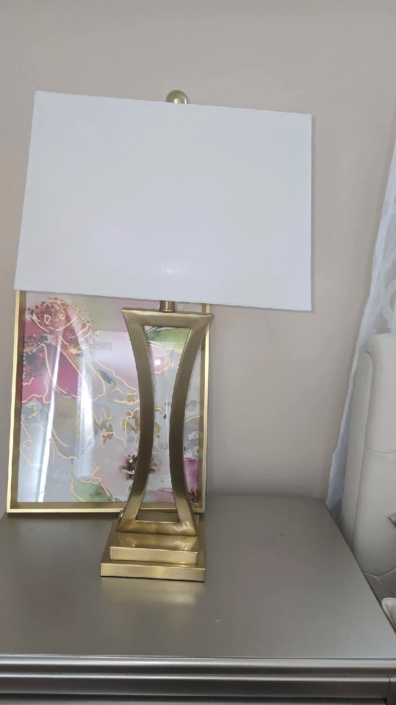 Here's a lovely gold table lamp, perfect for adding a touch of elegance to any room. It has a classic design that would complement a variety of decor styles. It's in great condition and ready to brighten up your space!