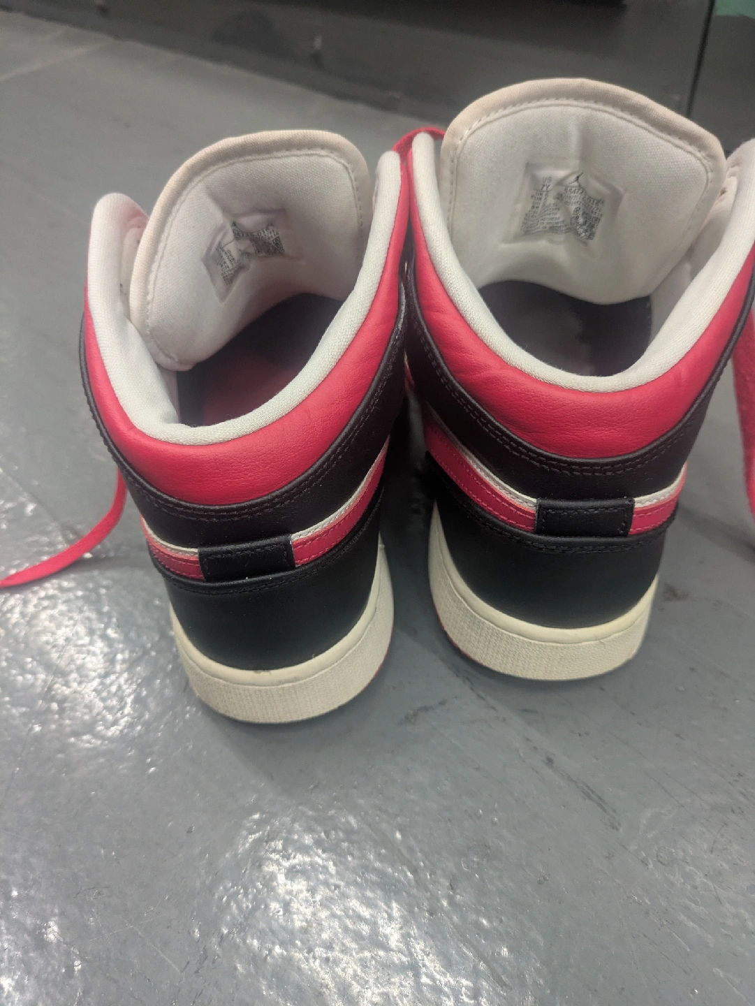 145Selling a pair of Air Jordan 1 Mid sneakers in black, white, and red. They're in great condition and ready for a new home! Size 7 Y Sold As Is