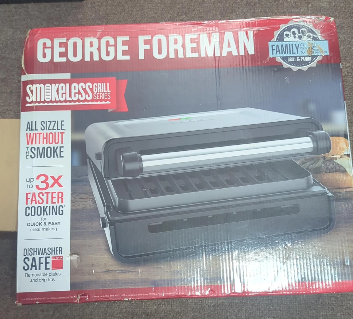 Get ready to sizzle without the smoke with this George Foreman Smokeless Grill! It offers up to 3x faster cooking for quick and easy meal making. Plus, it's dishwasher safe with removable plates and a drip tray for easy cleanup