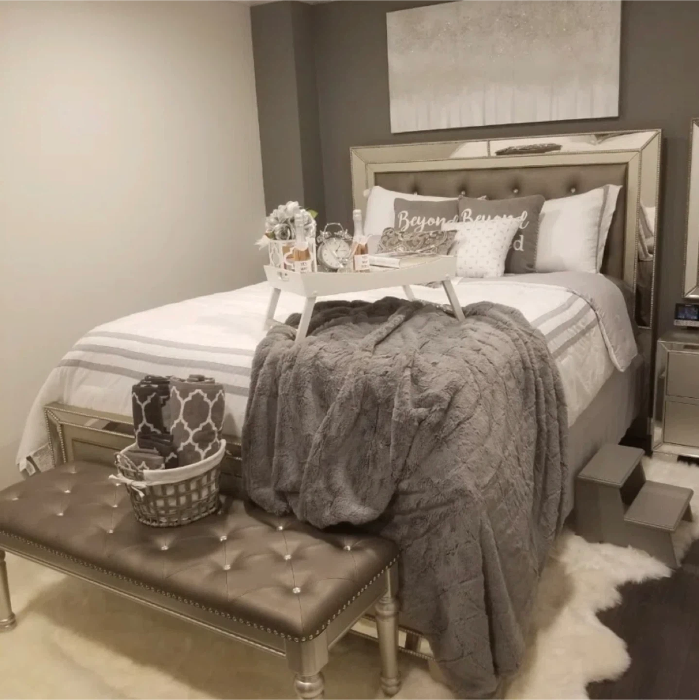 Selling a beautiful Queen size bed frame with mirrored accents! It's in great condition and will add a touch of glam to any bedroom. The headboard features leather button tufting for a luxurious feel. Queen Mattress also included.Ready for pick up!