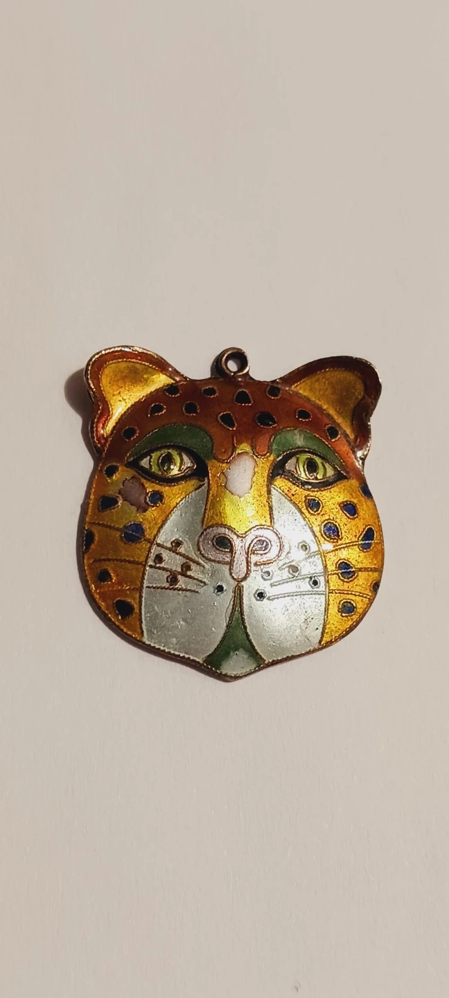 1000+This is a unique vintage sterling silver 925 enamel pendant in the shape of a leopard's head. It has a loop at the top for attaching to a chain or cord. The pendant features vibrant colors and intricate details. 1"×1". ALL MY PRICES ARE NEGOTIABLE !!