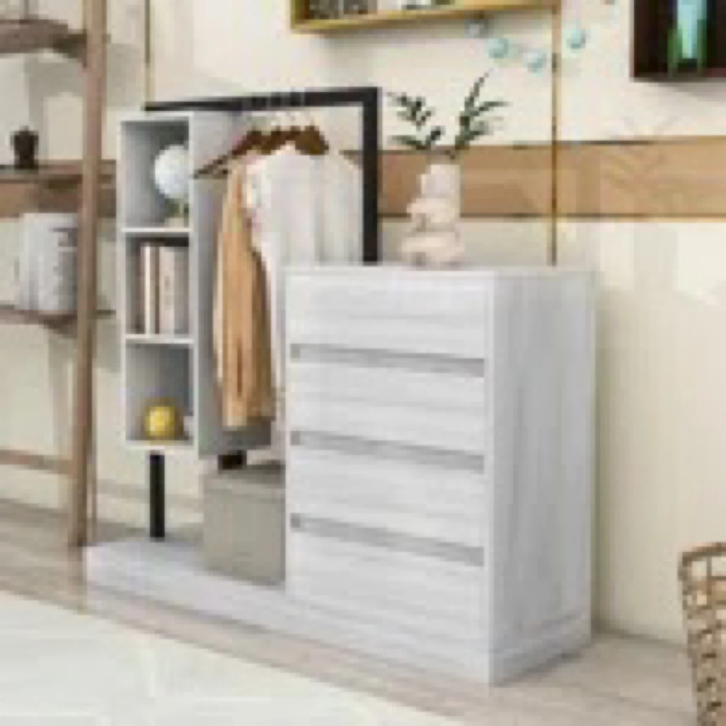 This wardrobe features a combination of drawers and shelves, perfect for organizing your clothes and accessories. It has a sleek design and neutral color that will fit well in any room. It’s a great storage solution! Already built - just need gone !