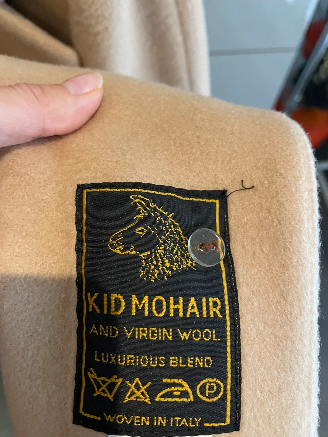 Selling a lovely Doncaster Heather coat in a beautiful beige colour. It's made with Kid Mohair and Virgin Wool, a luxurious blend woven in Italy. This coat is perfect for adding a touch of elegance to any outfit!