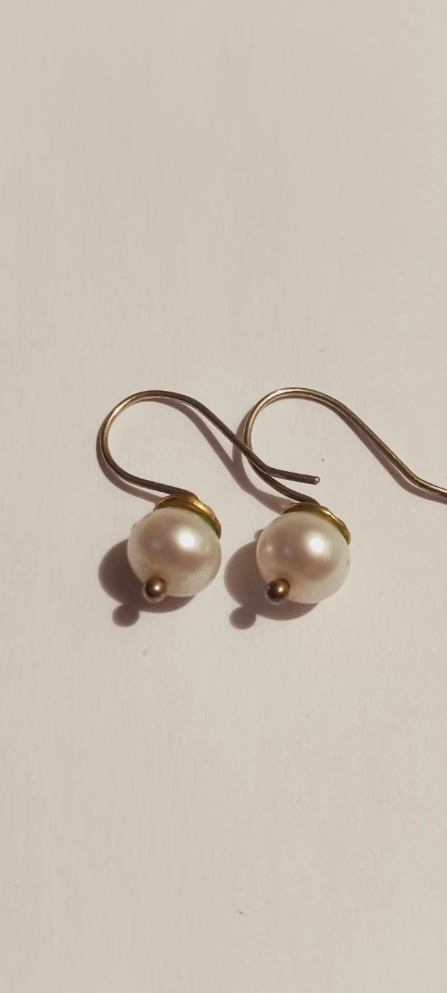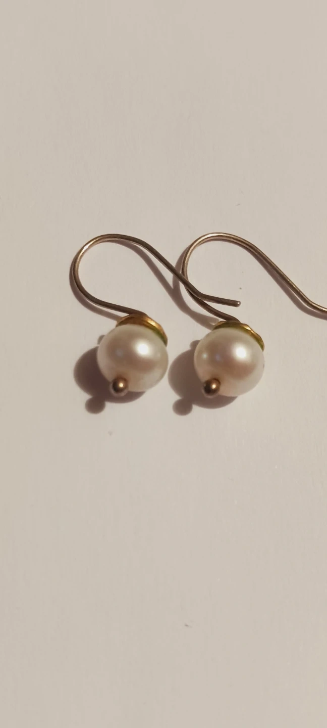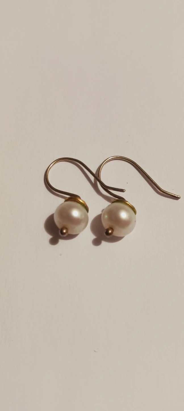 1000+These are a pair of delicate genuine Freshwater pearl drop earrings.They are simple & elegant, perfect for any occasion. The pearls have a lovely luster and are in great condition! 1" long