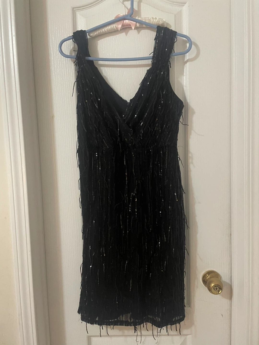 Selling a beautiful black sequin dress from Le Chateau. It's a size Large (G/L) and in great condition! Perfect for a night out or special occasion. The dress has a flattering V-neck and is covered in shimmering sequins