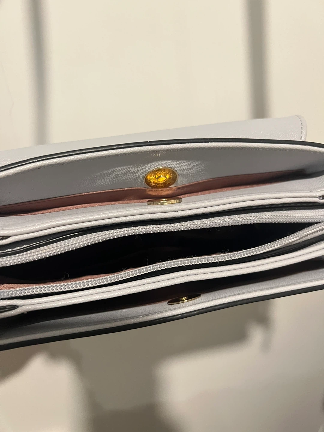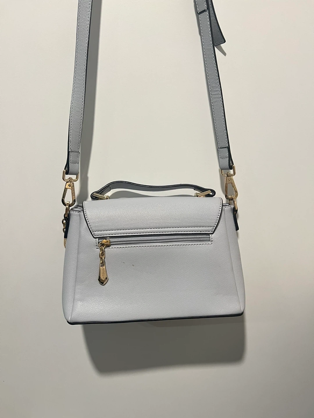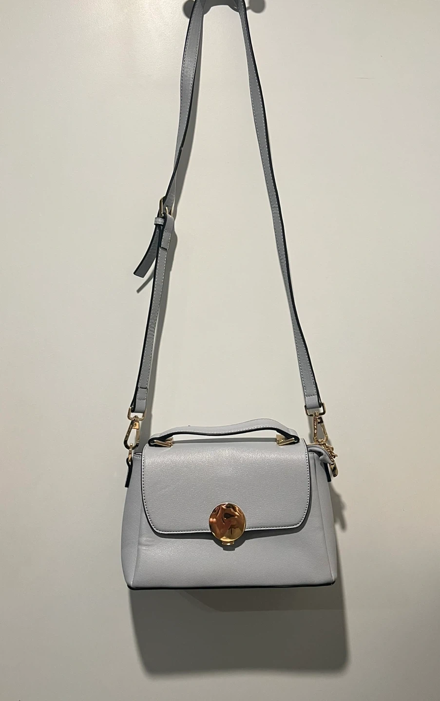 A stylish light blue crossbody bag that's perfect for everyday use! It features a convenient shoulder strap and a well-organized interior to keep your essentials secure and accessible