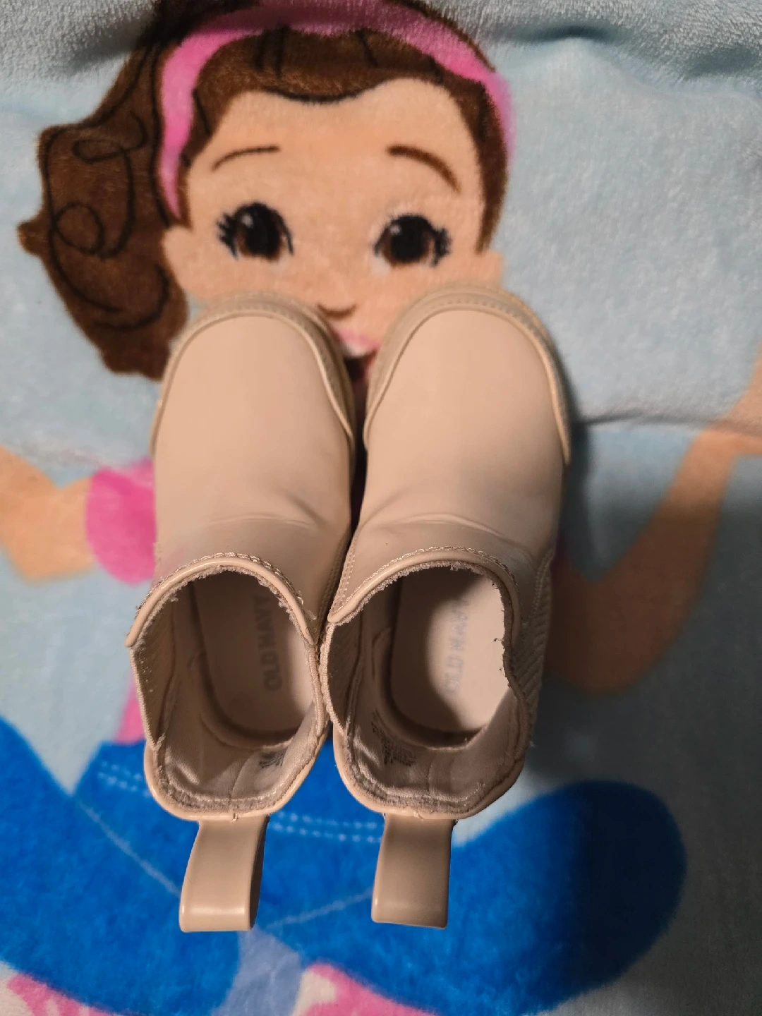 These are a pair of Old Navy Chelsea boots for toddlers in a neutral color. They are in great condition and are a size 8. Perfect for your little one!