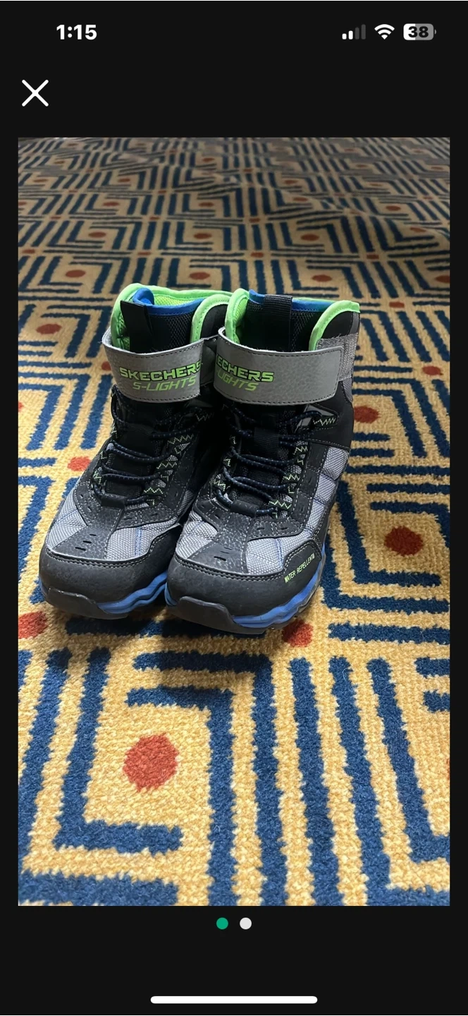 These Skechers S-Lights boots are perfect for keeping little feet dry! They're water repellent and in good condition. The size is 13.