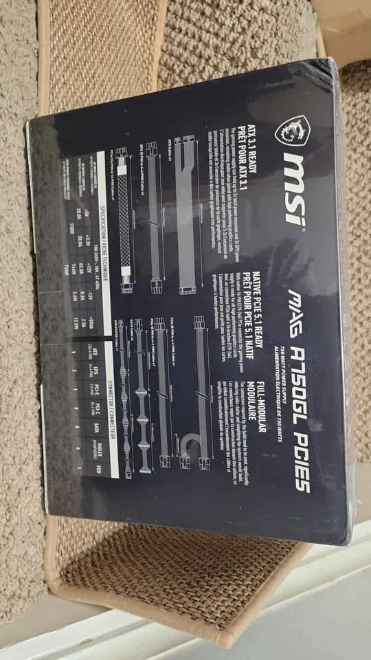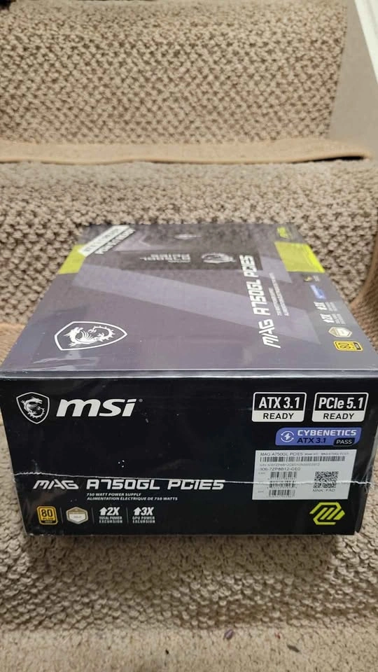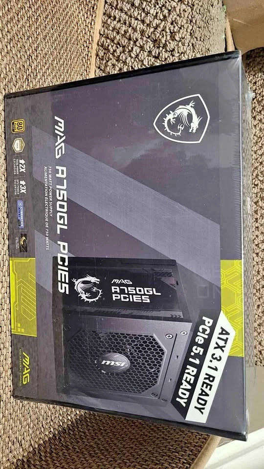 0Brand new sealed box. Firm price. MSI - MAG A750GL PCIE 5 750W ATX 3.1 Full Modular 80 Plus Gold Gaming Power Supply. Pickup near Fox Valley Mall Aurora.