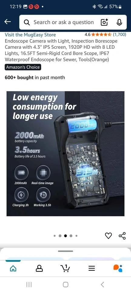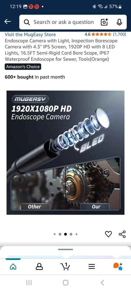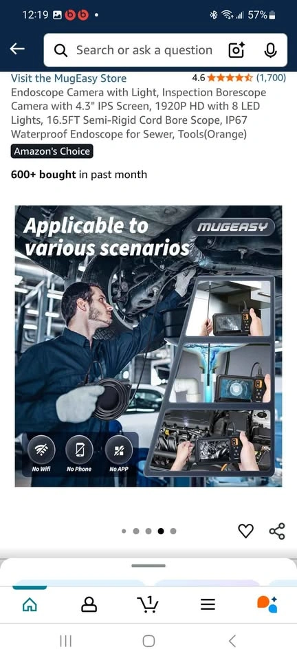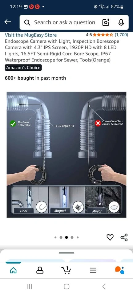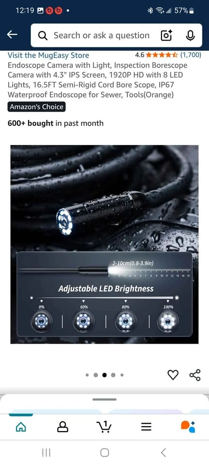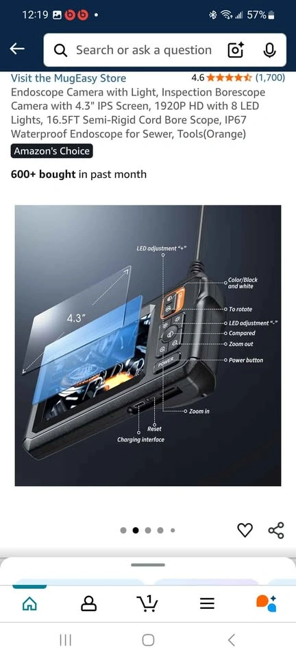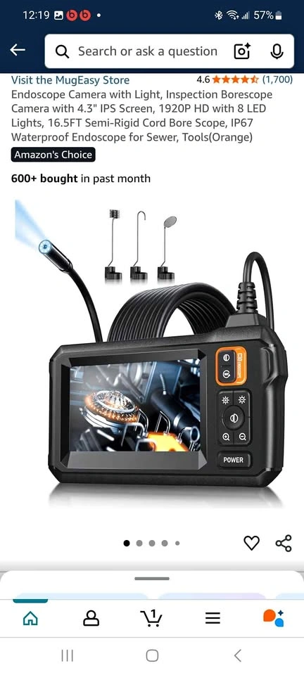 0Endoscope Camera with Light, Inspection Borescope Camera with 4.3" IPS Screen, 1920P HD with 8 LED Lights, 16.5FT Semi-Rigid Cord Bore Scope, IP67 Waterproof Endoscope for Sewer, Tools(Orange). Pickup near Fox Valley Mall Aurora.