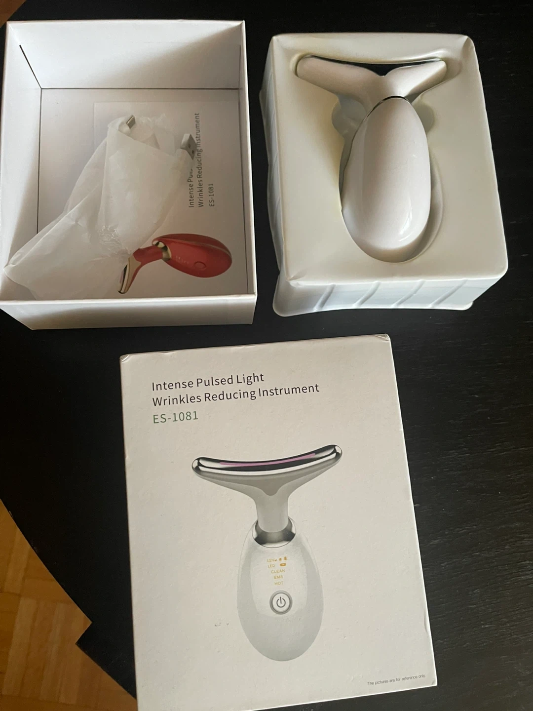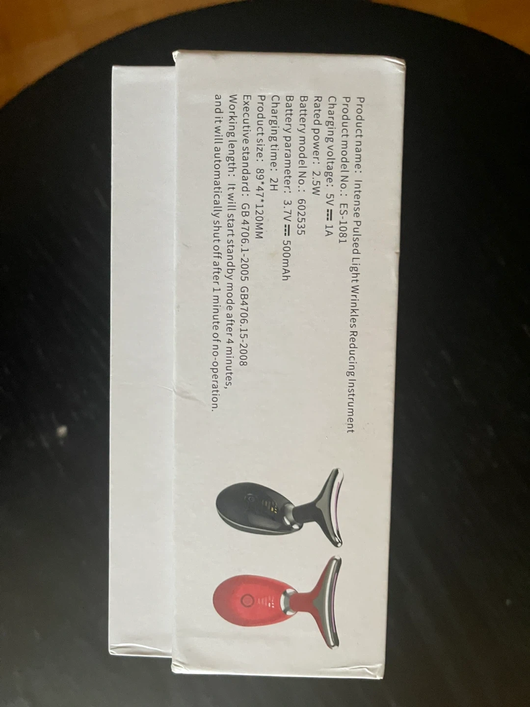 Selling an Intense Pulsed Light Wrinkles Reducing Instrument, model ES-1081. It comes with the box. It will start standby mode after 4 minutes, and it will automatically shut off after 1 minute of no-operation