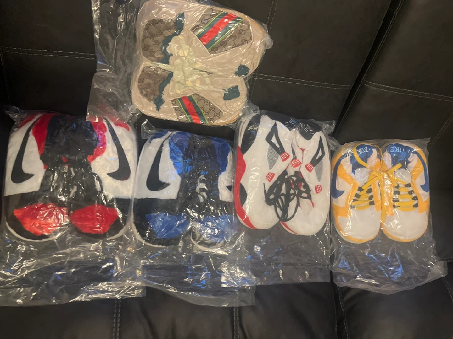 75Selling a variety of fun slippers, including Nike Air Jordan and Gucci styles! They're all brand new and still in their original packaging. Add a cozy touch to your loungewear with these unique designs
