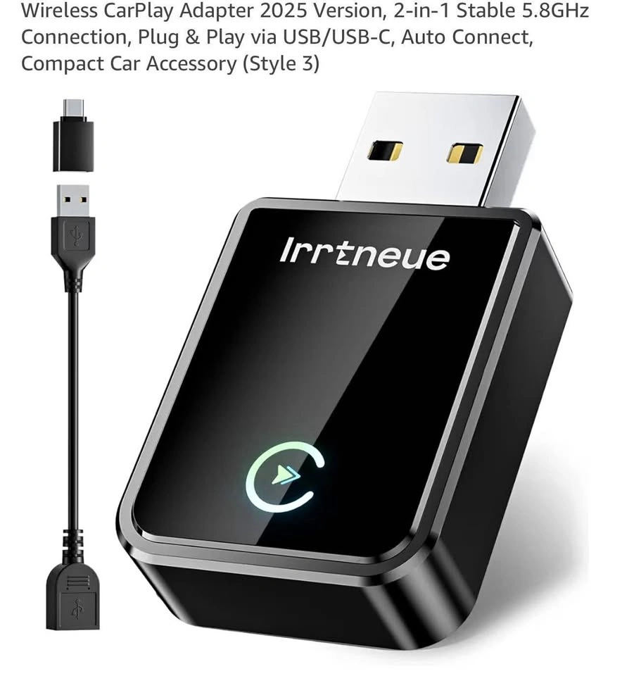 116Wireless CarPlay Adapter 2025 Version, 2-in-1 Stable 5.8GHz Connection, Plug & Play via USB/USB-C, Auto Connect, Compact Car Accessory (Style 3)