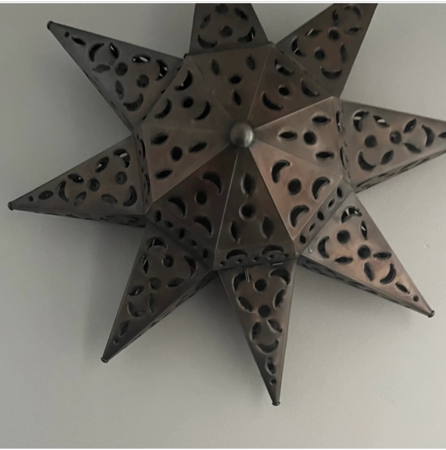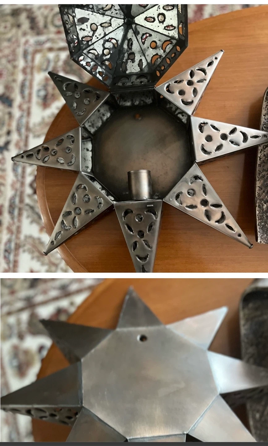 30Selling a metal star candle holder . It has a unique design with cutouts. Great for adding a touch of ambiance to any room