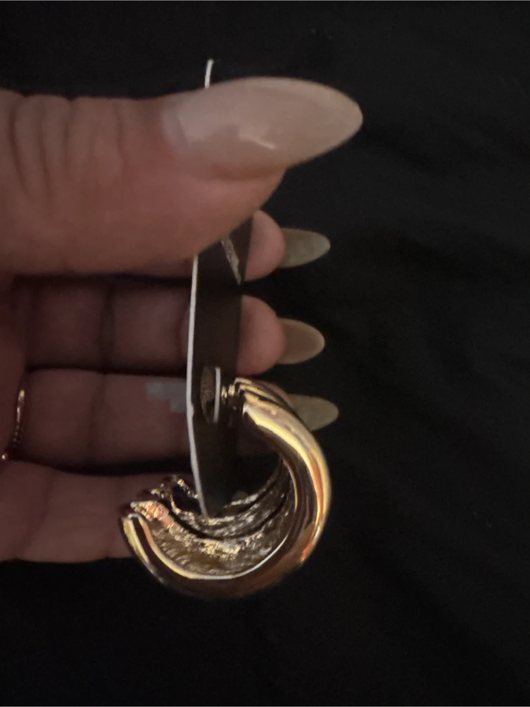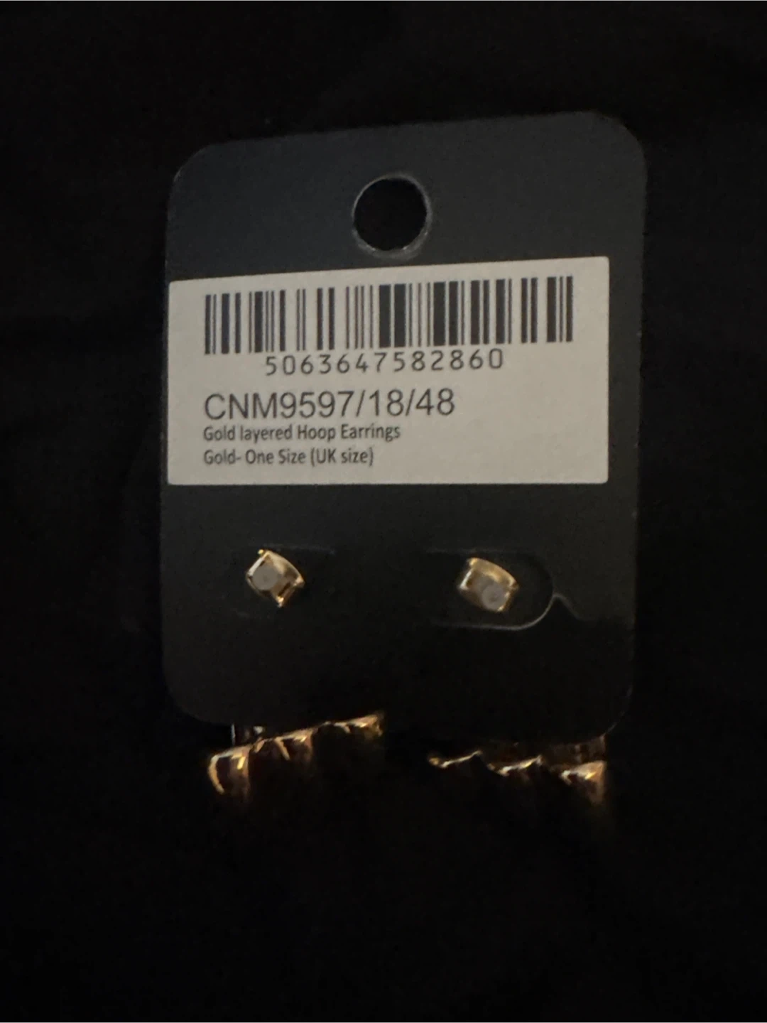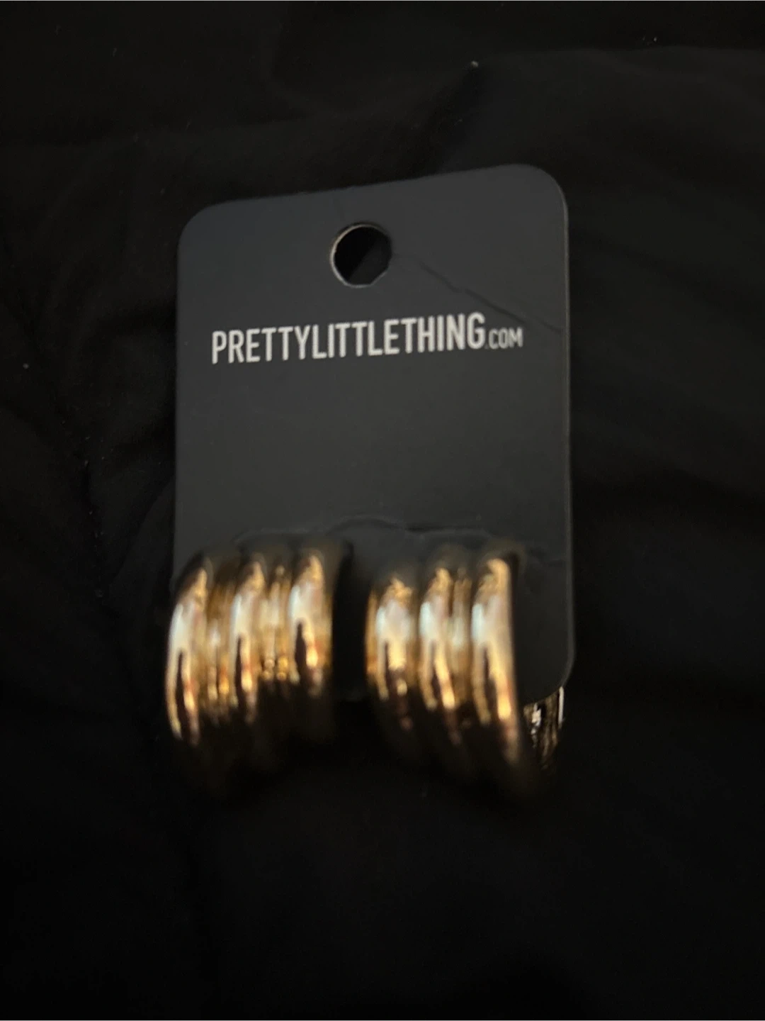 1000+These are gold layered hoop earrings from PrettyLittleThing! They are in new condition and come with the original backing card