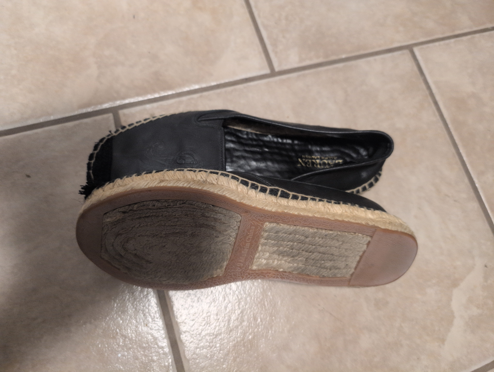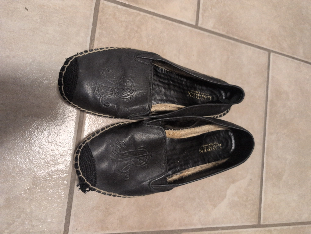 Selling a pair of Ralph Lauren espadrille slip-ons in black! They're in good condition and have a classic, casual look, perfect for everyday wear