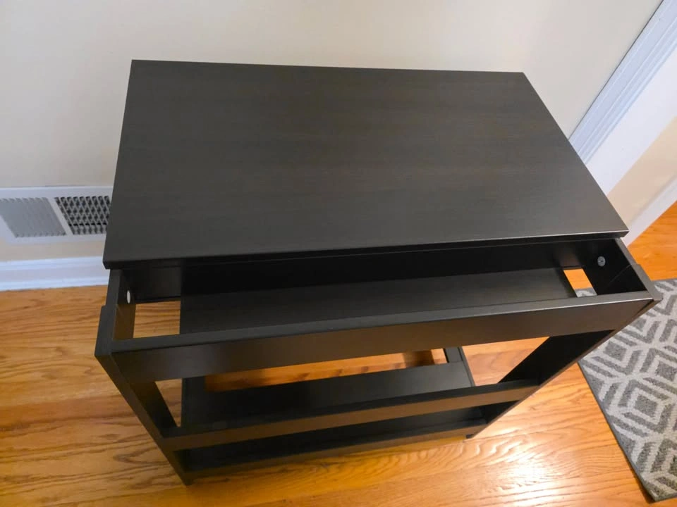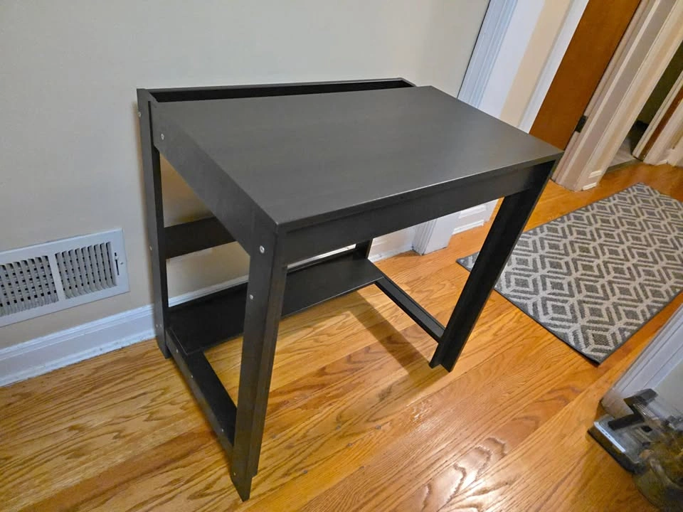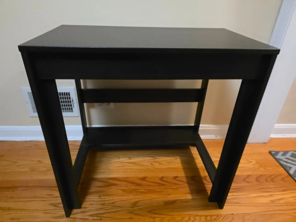 IKEA dark brown LAIVA desk. Desk is in good condition minus a scratch on the side of the front right leg (final picture). Original instruction booklet included. ~27.5" W x 19.5" D x 28.25" H.