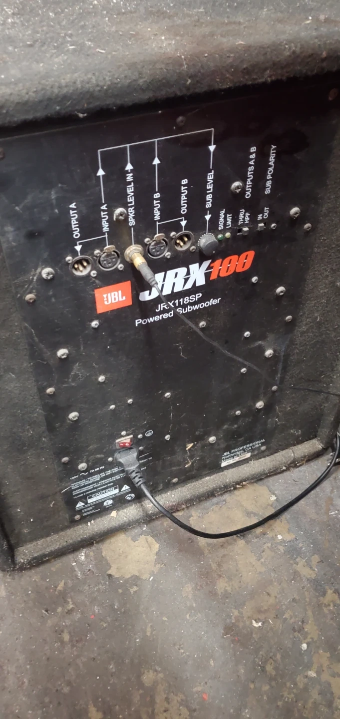 Selling a JBL JRX118SP powered subwoofer. It is a powerful subwoofer perfect for any event or performance. It has output A and B, input A and B, and sub polarity. Let me know if you have any questions!